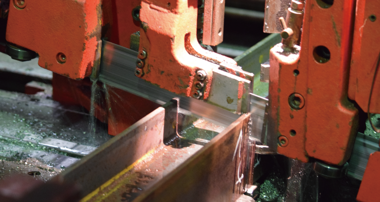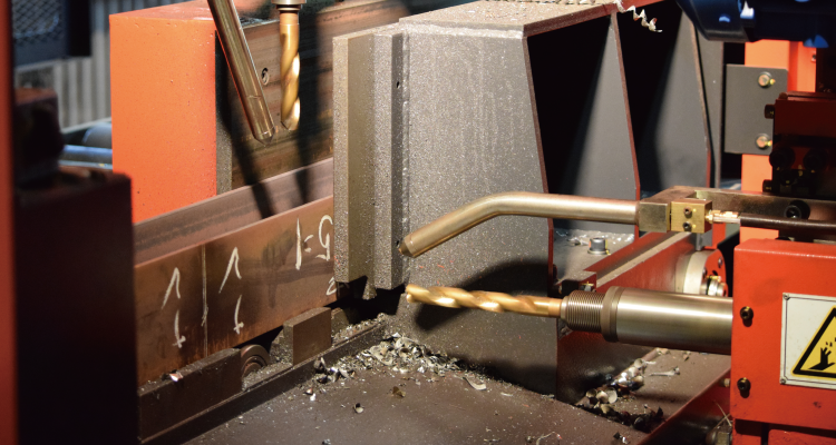 検査済の材料を機械にセットし、大きさや位置を入力し自動作業します。