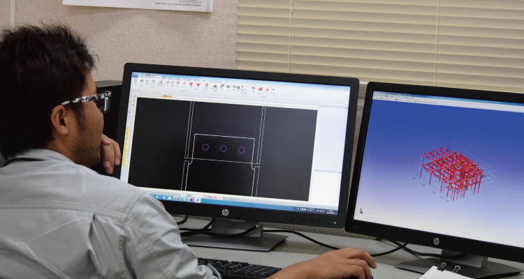 設計図を基に鉄骨の施工図を作成し、クライアントからの承認をうけ、材料の発注、工場への製造依頼を行います。